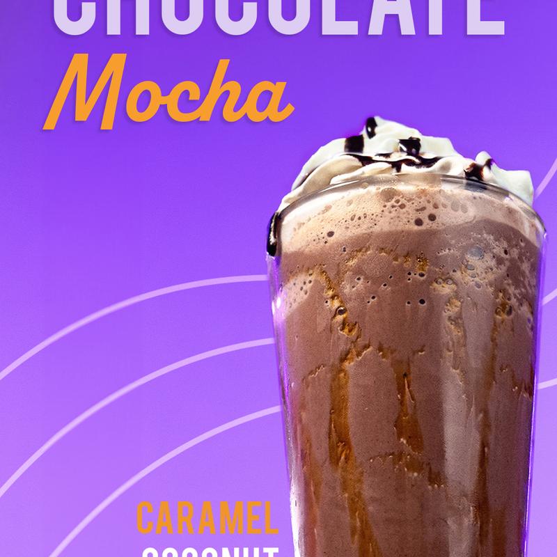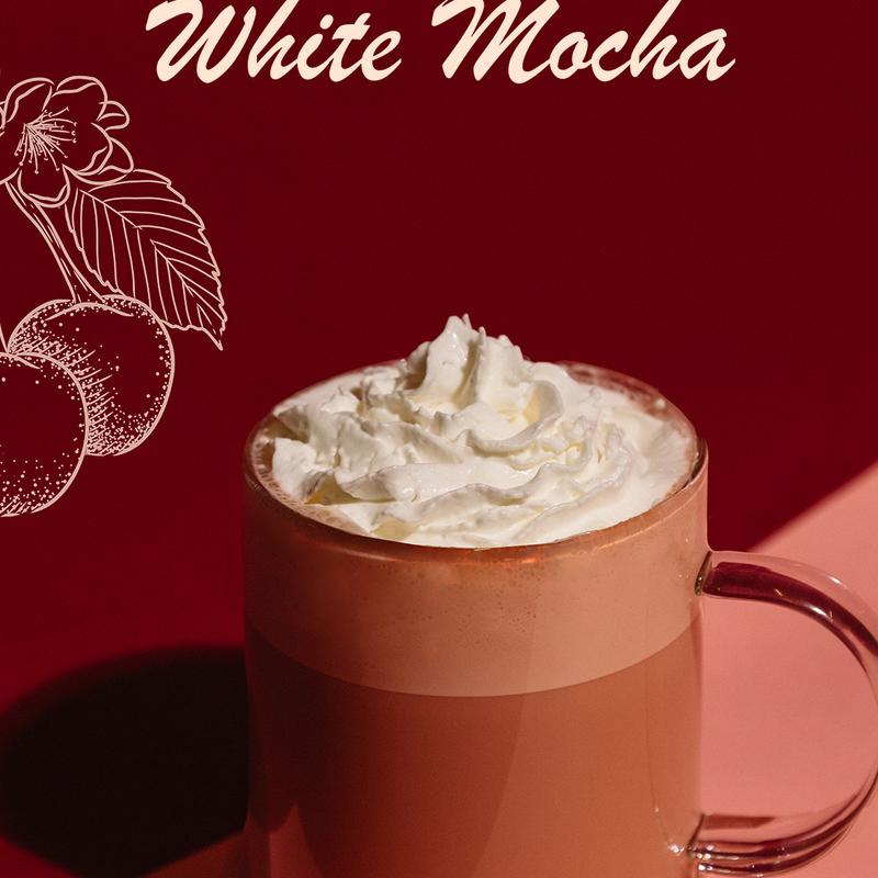 Our signature mocha with espresso, white chocolate sauce, swirls of caramel, and milk.